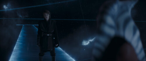 とどめを刺そうとするアナキンの一撃をかわし、逆にそのライトセーバーをアナキンに突き付けたアソーカは、生きることを選んだ。アナキンの姿はもとに戻り、まだ望みはあると告げるとアソーカの前から消えた。