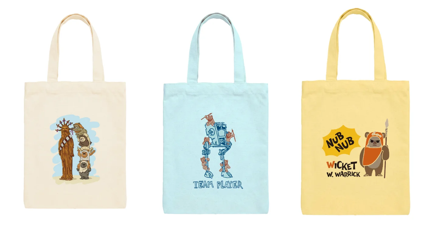 イウォークの3種のイラストがデザインされたトートバッグ。