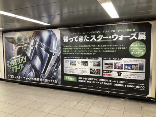 JR新橋駅から汐留シオサイト方面に向かう通路には、「帰ってきたスター・ウォーズ展」の広告が掲出!