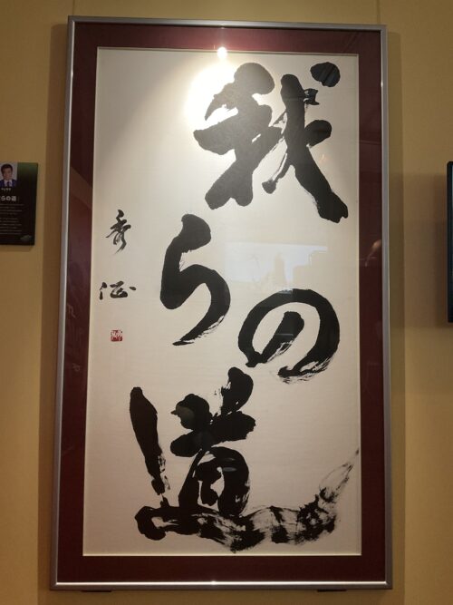 タレントであり書道家としても活躍する中山秀征さんによる、チルドレン・オブ・ザ・ウォッチの言葉「我らの道」の力強い書が。