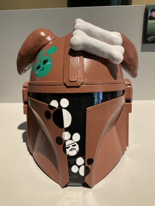 ●コンセプト:自分がマンダロリアンだとしたらどんなヘルメットを被るかな?と考えながら作りました。マンドーと言ったらやっぱりグローグーは欠かせないでしょ!ってことでグローグーも描きました。そして「スター・ウォーズ」といったらストームトルーパー」そしてそして今後もっと人気になるであろうころねの大好きなローディアンちゃんを後ろに描かせていただきました!!かわいい!!!!!