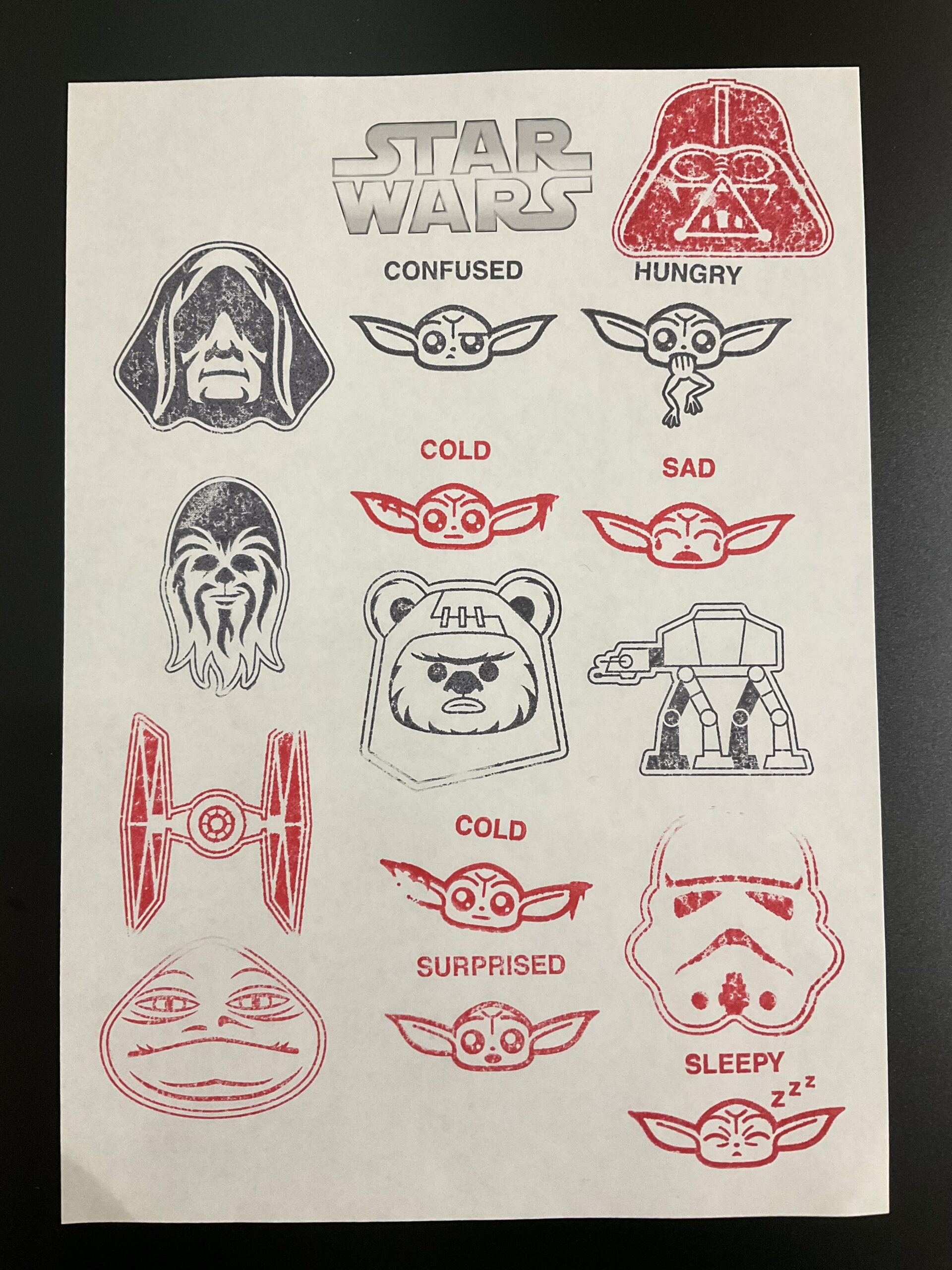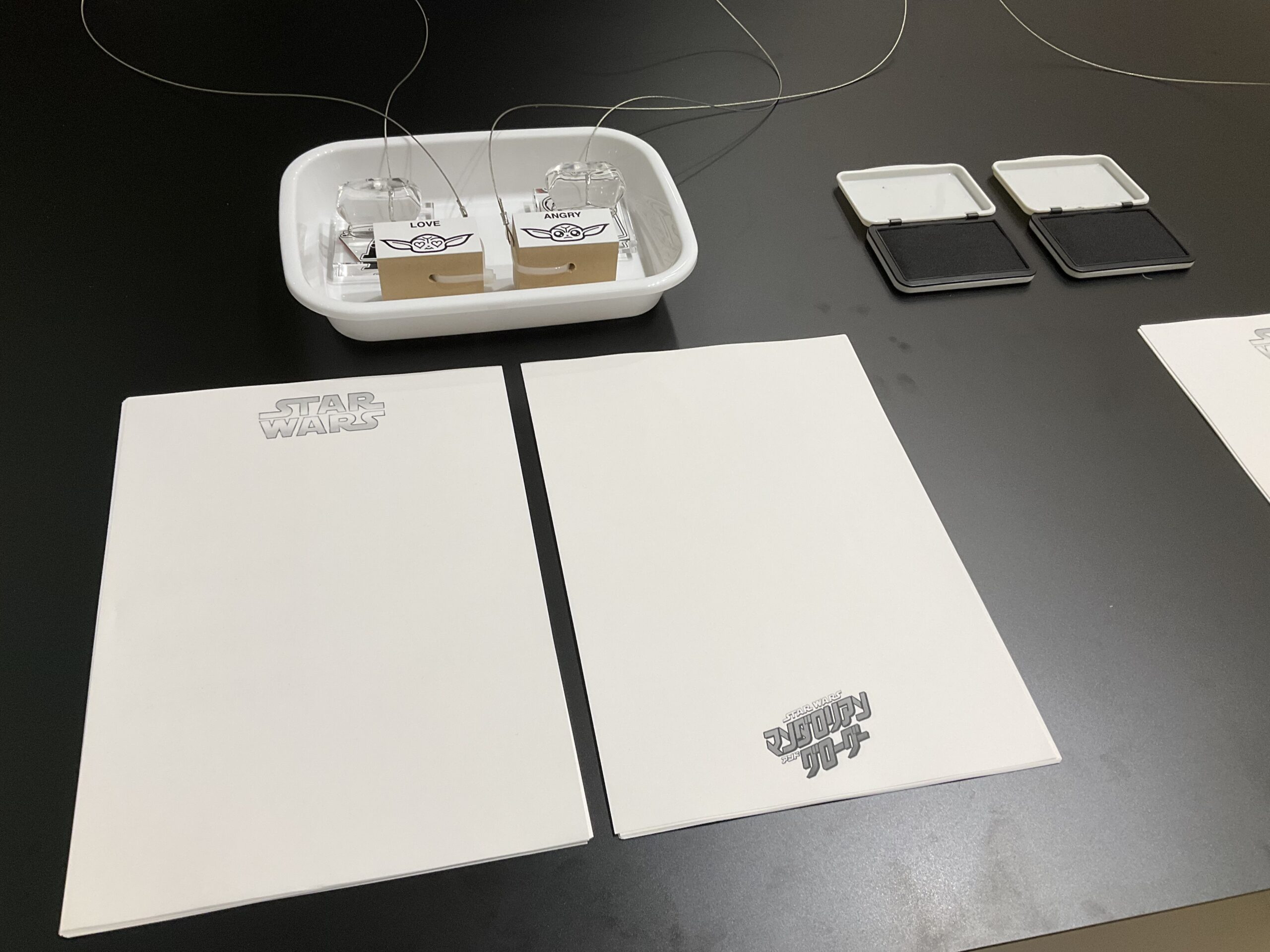 スタンプを押せる紙は、『スター・ウォーズ』ロゴと『マンダロリアン・アンド・グローグー』ロゴの2種類があります。