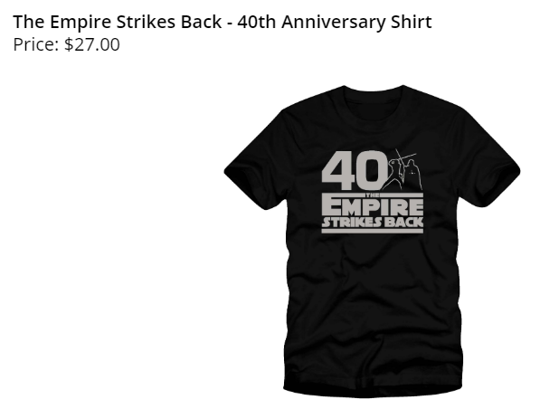 また来年2020年は『スター・ウォーズ/帝国の逆襲』公開40周年となりますので、40周年記念グッズとしてTシャツとキャップの販売も確認出来ました。