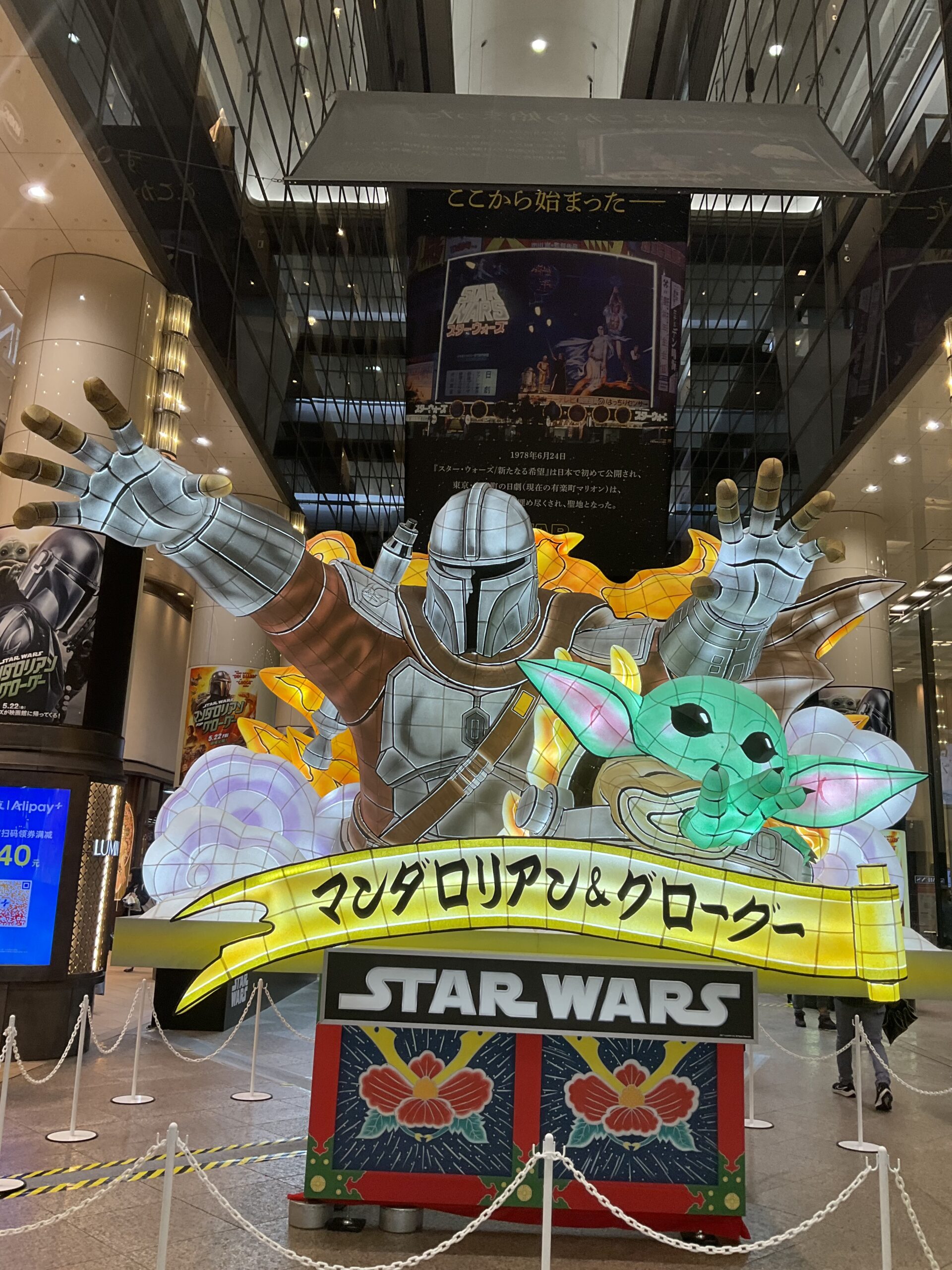 すっかりおなじみとなったマンダロリアンとグローグーのねぶたも!有楽町駅側から来ると、遠くからでも見えるほど目立ちます!