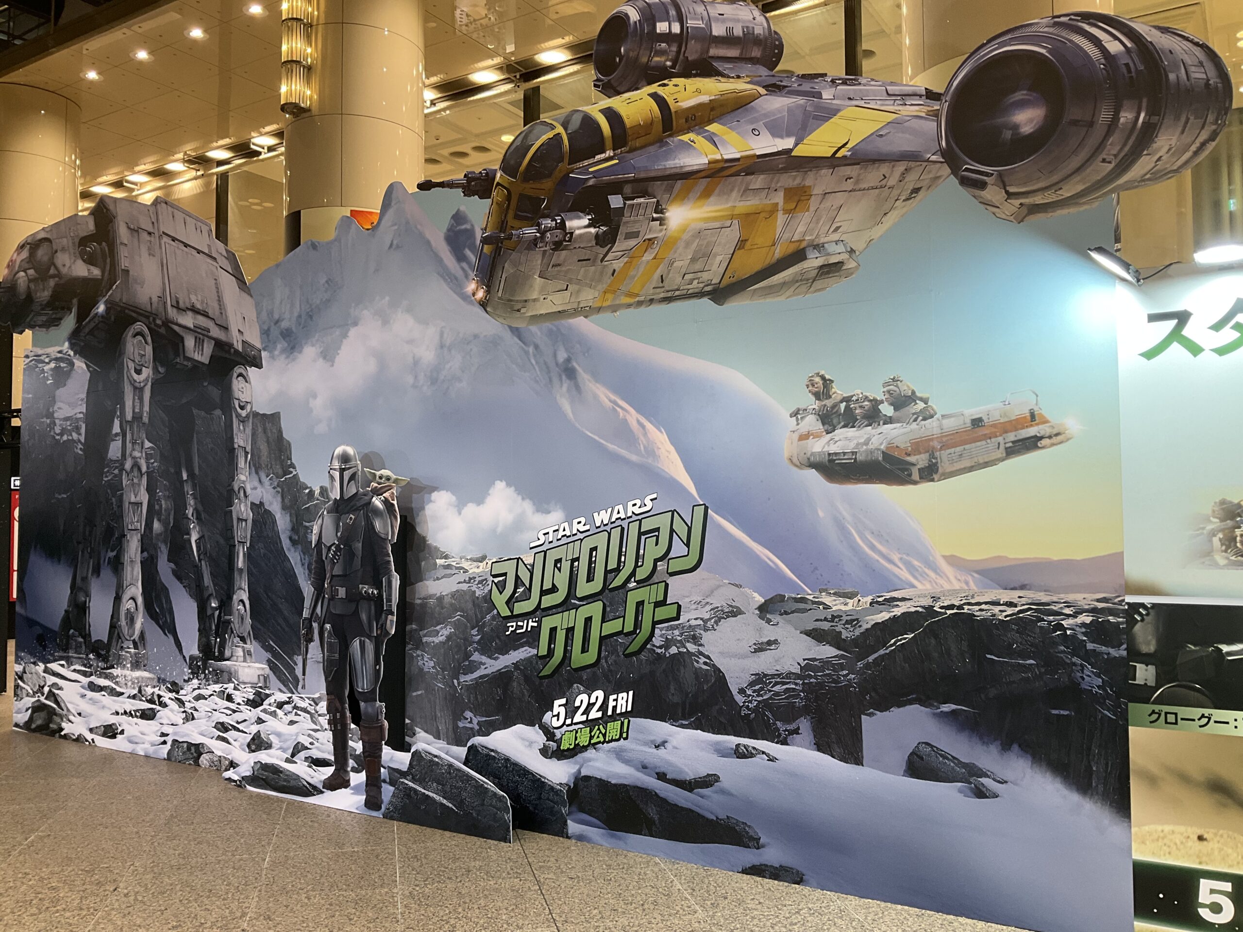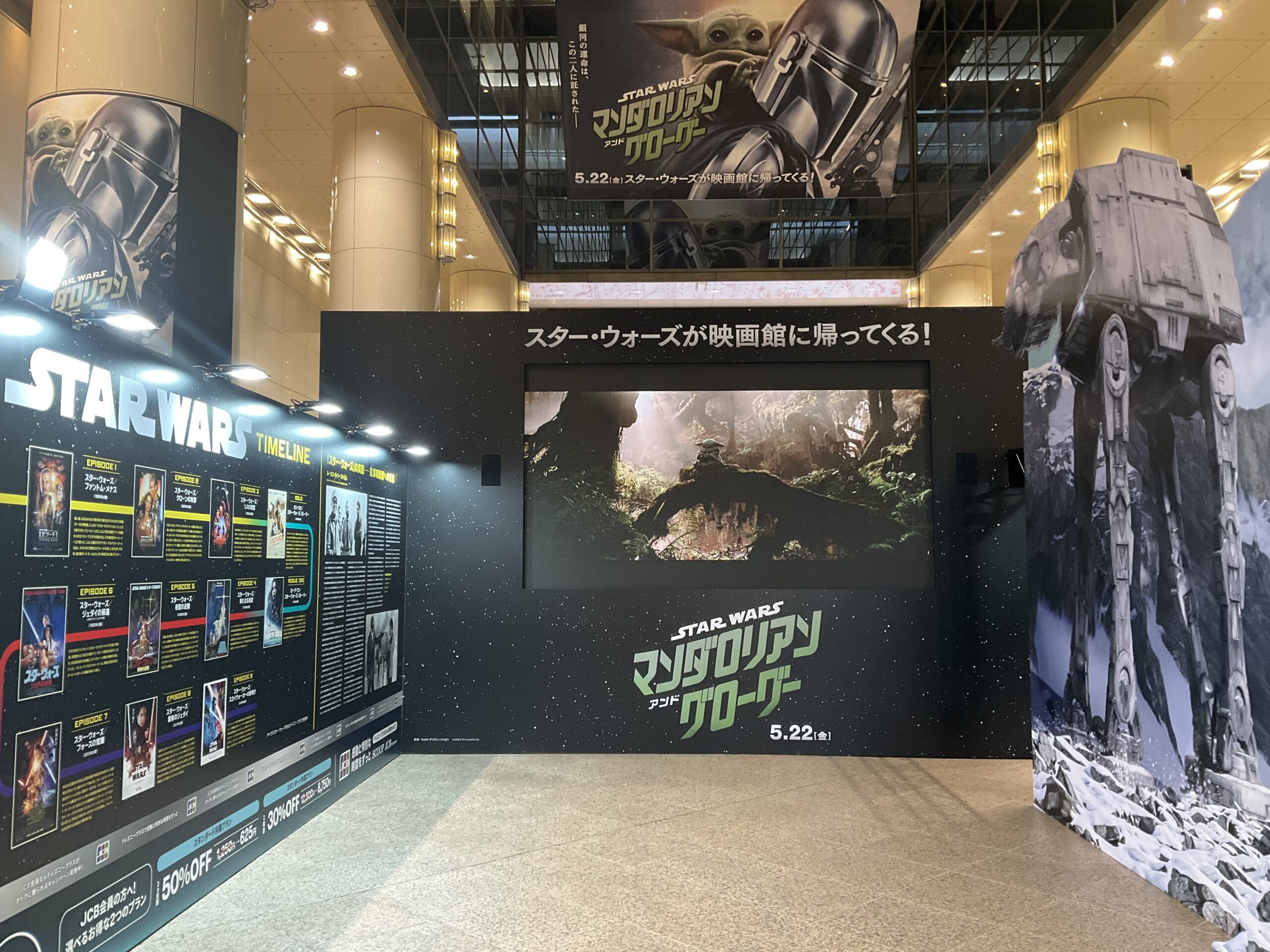 AT-ATやレイザー・クレストなどが大きくデザインされた『スター・ウォーズ/マンダロリアン・アンド・グローグー』のパネルは、新作映画の新たなビジュアルの大型展示!