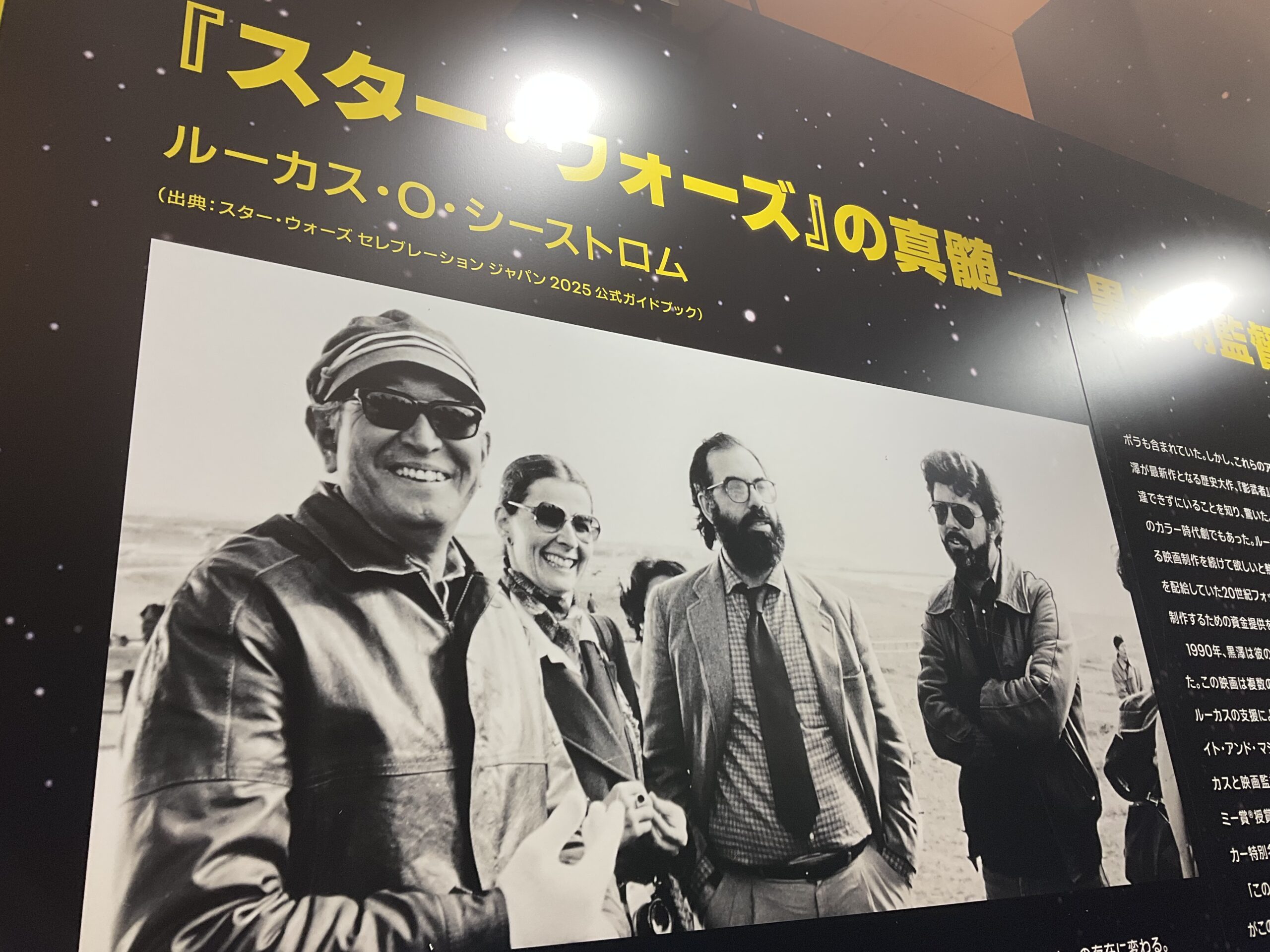 「スター・ウォーズセレブレーションジャパン2025」公式ガイドブックに掲載の黒澤明監督と『スター・ウォーズ』についての記事も展示されており、貴重な機会となっています!