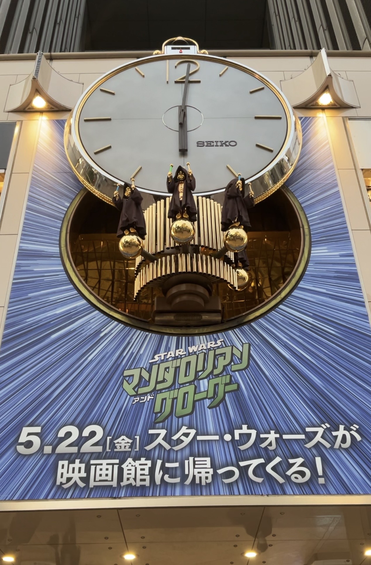 そして有楽町マリオンの入口にあり、待ち合わせのシンボルである「セイコーマリオンクロック」が、期間限定で『スター・ウォーズ』仕様に!