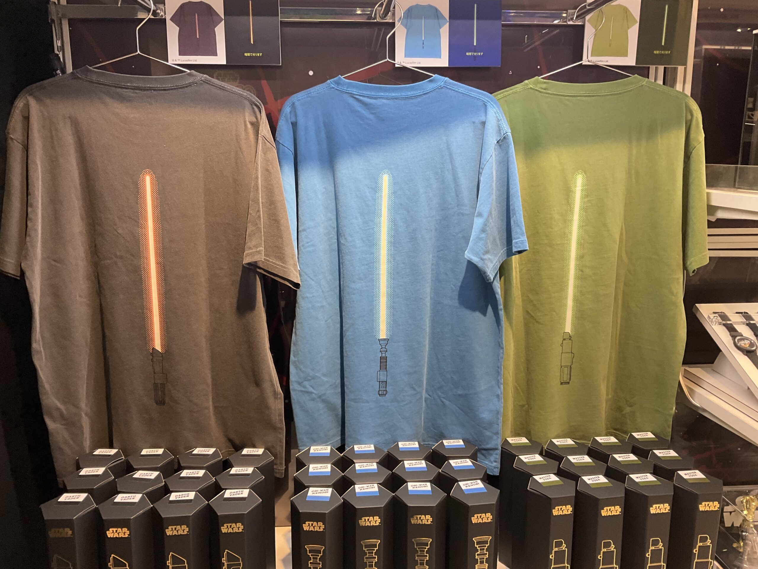 バックプリントにライトセーバーがデザインされたTシャツが、専用BOXに入って登場。