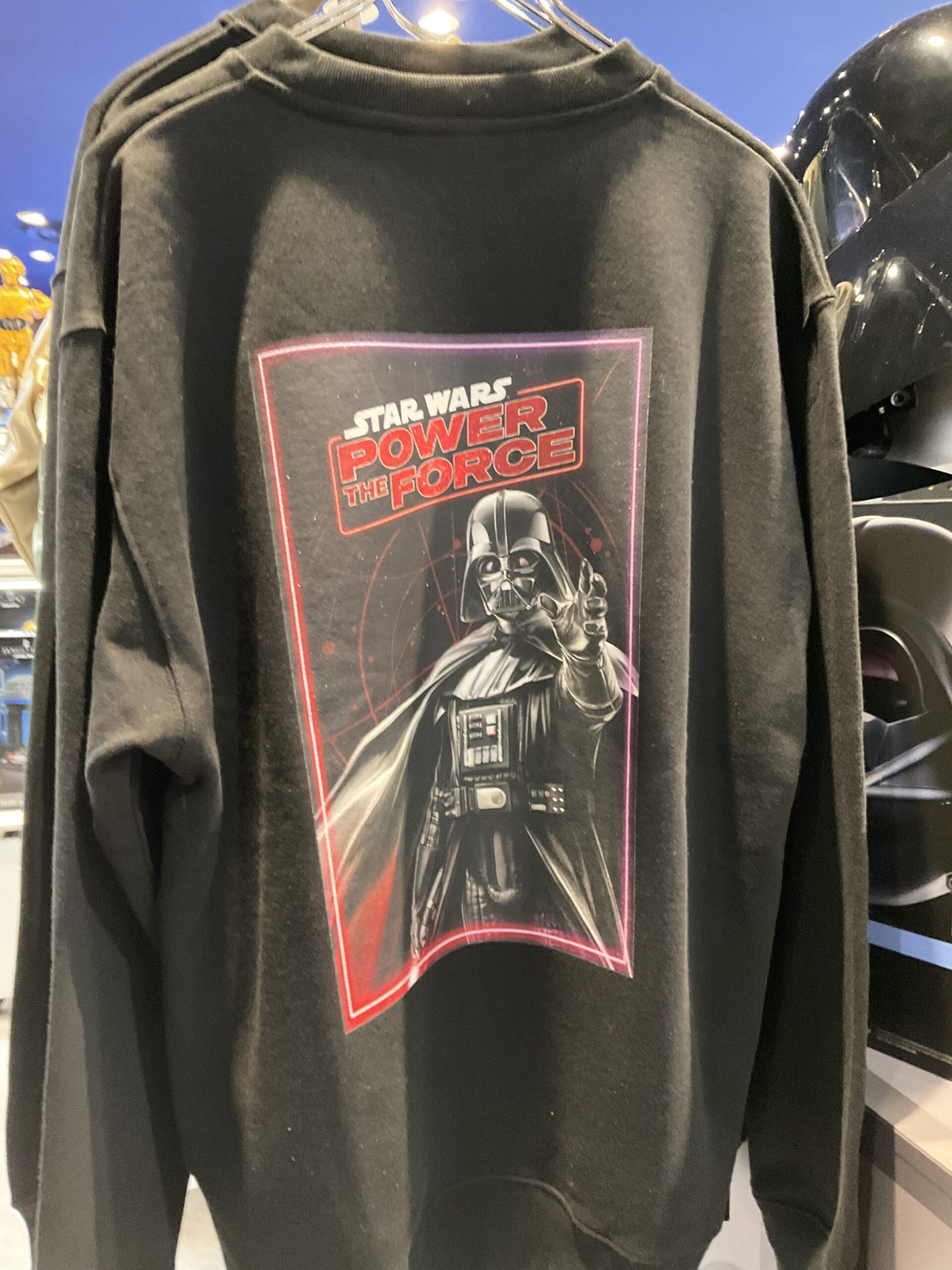 レッドカラーの「POWER THE FORCE」ロゴとともに、フロントにダース・ベイダーがプリントされたスウェット。これからの季節に活躍する一枚です。価格は8,800円(税込)。