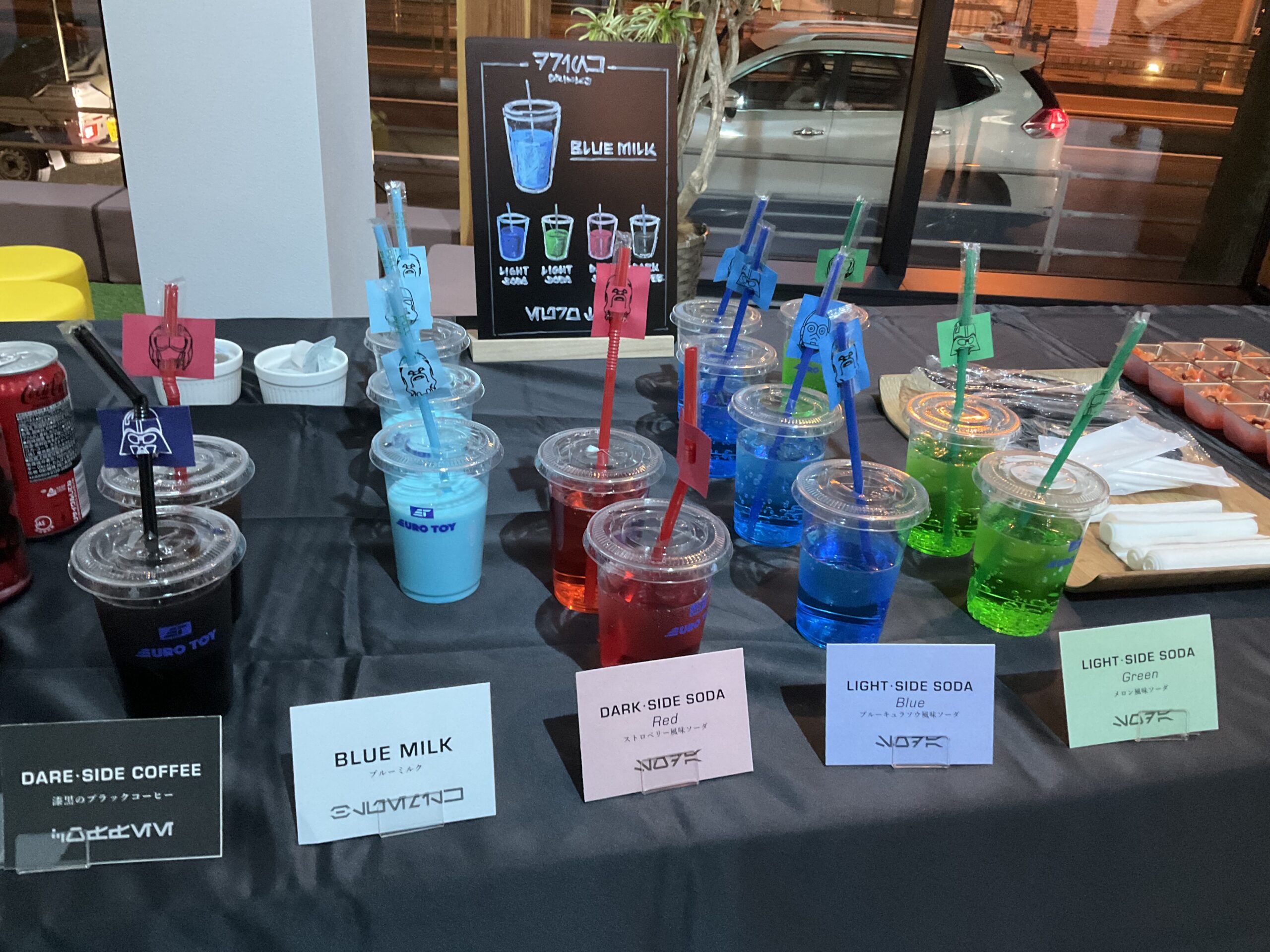 来場者には『スター・ウォーズ』にちなんだウェルカムドリンクや軽食も提供され、まさにお披露目パーティーの雰囲気!この車両を製造・販売する株式会社トイファクトリーのスタッフの方々の名札も、オーラベッシュで併記されており、遊び心がありました!