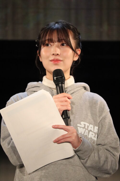 『スター・ウォーズ』ファンについて、安部若菜は「世代も幅広いなと思っていて。私も両親と一緒に『スター・ウォーズ』を見ていたんですけど、今日もこのステージに来てらっしゃる方とかもホント同じぐらい。20代の方もいれば、それより上の方もいらっしゃったり、ホントに幅広い世代。世界中で愛されてる作品なんだなっていうのを、こういうステージでも改めて実感しますね」と、その印象をコメント。