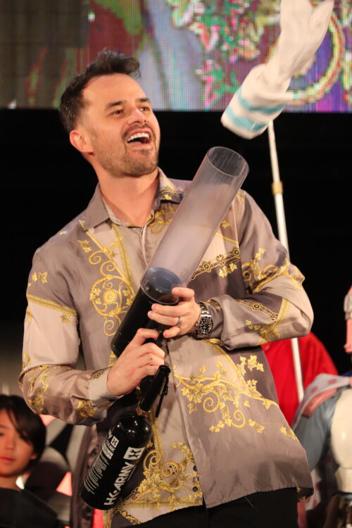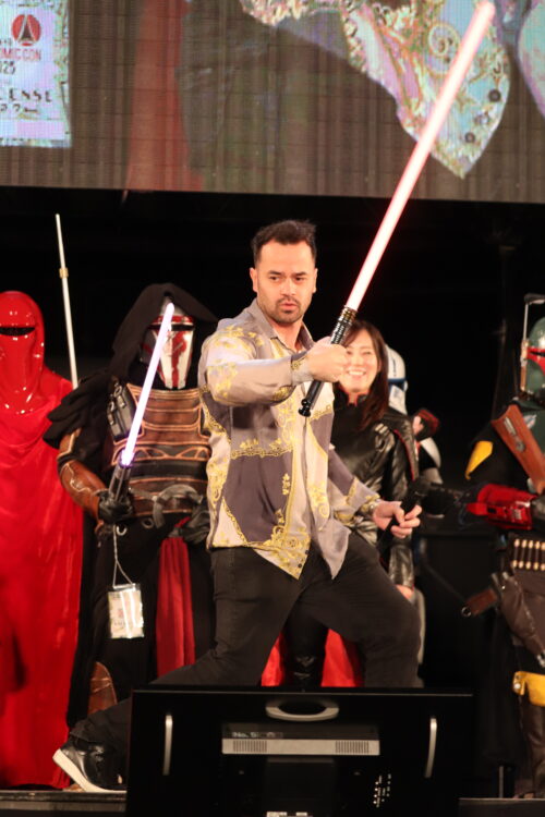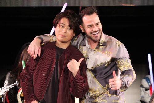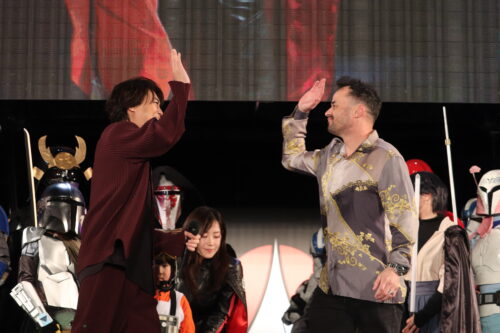ダニエル・ローガンは「(日本語で)大好き!かっこいい!かわいい!(英語で)美しい!」とコメントし、ダース・レヴァンのコスチュームを着たファンが持っていたライトセーバーを借りて、側転しながらの演舞を披露!観客からは大きな歓声が上りました!