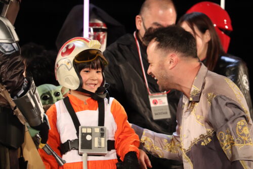 出演は、『エピソード2/クローンの攻撃』、「クローン・ウォーズ」にてボバ・フェットを演じ、毎年このステージでおなじみのダニエル・ローガン。入場時には、お子さんも連れてステージに現れました!