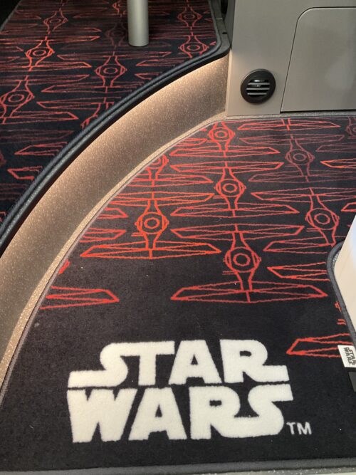 バゲッジルームのフロアマットには、『新たなる希望(エピソード4)』のオープニングクロールをデザイン。