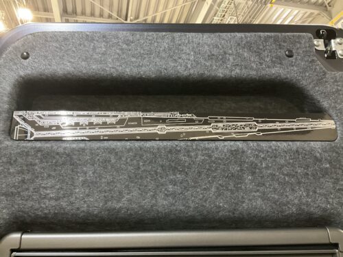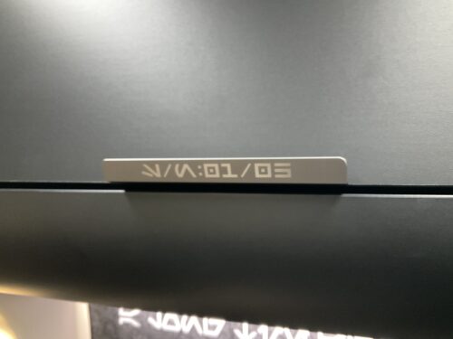 アッパー家具の取っ手には、オーラベッシュが!こちらは限定5台生産のうち、この車両のシリアルナンバーを記したものでこの車両は1号車です。