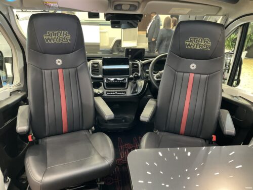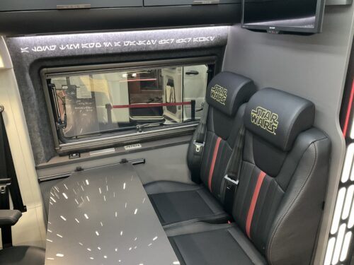 帝国軍の施設を思わせるインテリアで、アウトドアだけではなく『スター・ウォーズ』の世界に自身が入り込んだかのような体験が出来そうです。この車両で旅をするだけではなく、自分の部屋のようにこの空間で日々過ごし、好きなもので満たされるという楽しみ方は、従来のキャンピングカーとはまた違った体験となるでしょう!