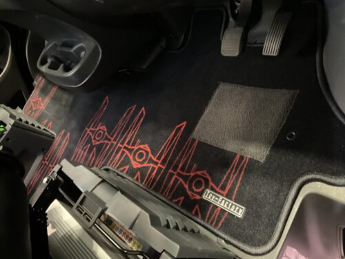 フロアマットはリビングだけではなく運転席にも敷かれており、運転時も気分が高まりそうです。