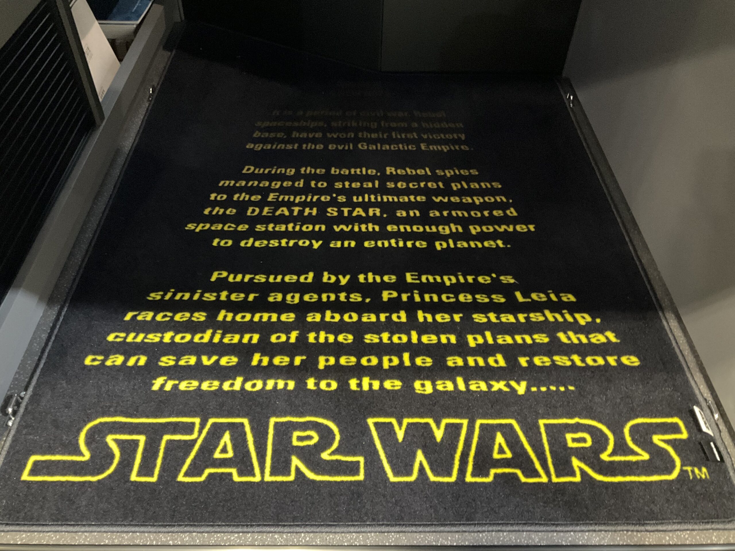 バゲッジルームのフロアマットには、『新たなる希望(エピソード4)』のオープニングクロールをデザイン。